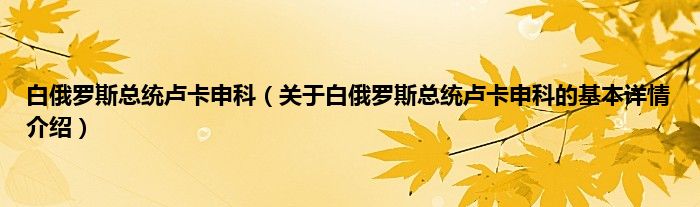 本文关于白俄罗斯总统卢卡申科的基本详情介绍就讲解完毕,希望对大家有所帮助。