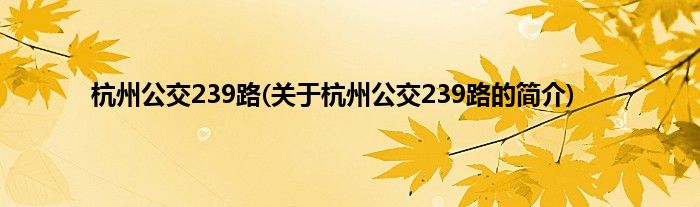 本文关于杭州公交239路的简介就讲解完毕,希望对大家有所帮助。