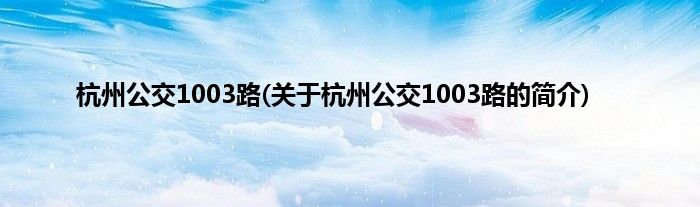 本文关于杭州公交1003路的简介就讲解完毕,希望对大家有所帮助。