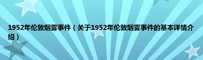 本文关于1952年伦敦烟雾事件的基本详情介绍就讲解完毕,希望对大家有所帮助。