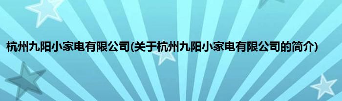 本文关于杭州九阳小家电有限公司的简介就讲解完毕,希望对大家有所帮助。