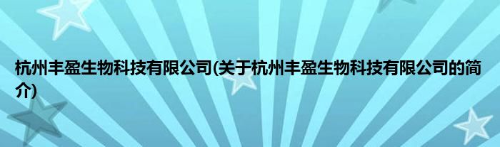 本文关于杭州丰盈生物科技有限公司的简介就讲解完毕,希望对大家有所帮助。