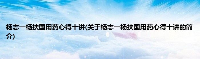 大家好,杨志一杨扶国用药心得十讲,关于杨志一杨扶国用药心得十讲的简介很多人还不知道,现在让我们一起来看看吧!