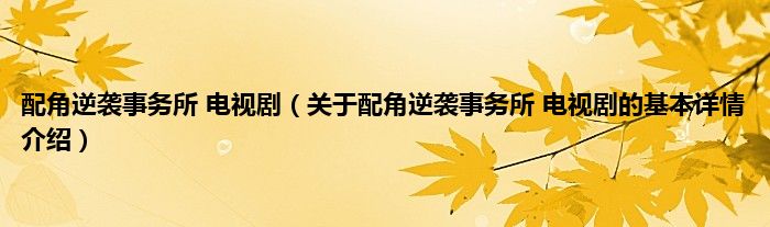 本文关于配角逆袭事务所 电视剧的基本详情介绍就讲解完毕,希望对大家有所帮助。
