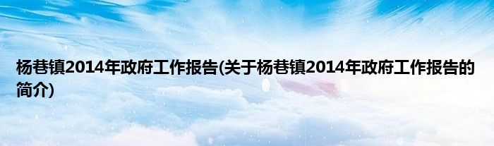 本文关于杨巷镇2014年政府工作报告的简介就讲解完毕,希望对大家有所帮助。