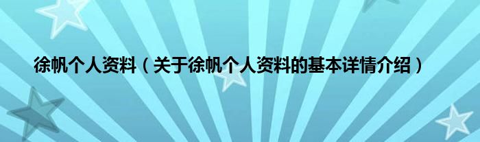 徐帆个人资料(关于徐帆个人资料的基本详情介绍)