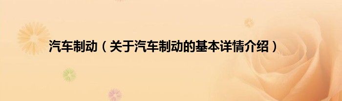 本文关于汽车制动的基本详情介绍就讲解完毕,希望对大家有所帮助。