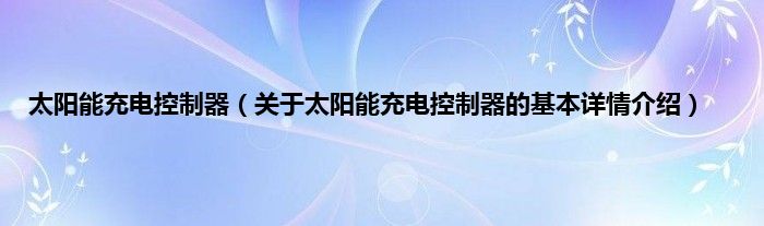 太阳能充电控制器(关于太阳能充电控制器的基本详情介绍)