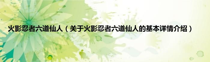 本文关于火影忍者六道仙人的基本详情介绍就讲解完毕,希望对大家有所帮助。