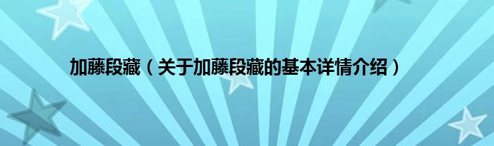 本文关于加藤段藏的基本详情介绍就讲解完毕,希望对大家有所帮助。