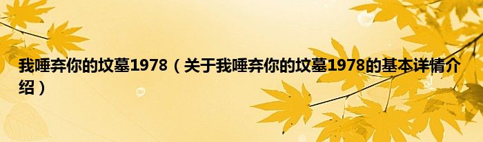 本文关于我唾弃你的坟墓1978的基本详情介绍就讲解完毕,希望对大家有所帮助。