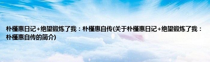 大家好,朴槿惠日记+绝望锻炼了我:朴槿惠自传,关于朴槿惠日记+绝望锻炼了我:朴槿惠自传的简介很多人还不知道,现在让我们一起来看看吧!