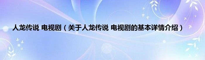 本文关于人龙传说 电视剧的基本详情介绍就讲解完毕,希望对大家有所帮助。