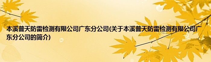 本文关于本溪普天防雷检测有限公司广东分公司的简介就讲解完毕,希望对大家有所帮助。