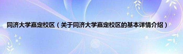 同济大学嘉定校区(关于同济大学嘉定校区的基本详情介绍)