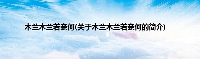 大家好,木兰木兰若奈何,关于木兰木兰若奈何的简介很多人还不知道,现在让我们一起来看看吧!