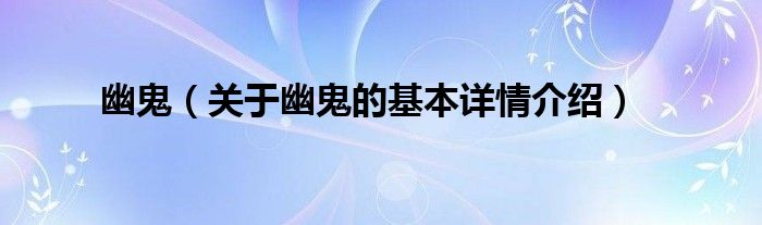 本文关于幽鬼的基本详情介绍就讲解完毕,希望对大家有所帮助。