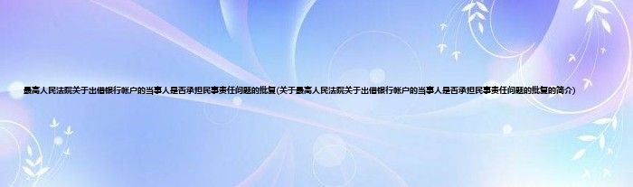 大家好,最高人民法院关于出借银行帐户的当事人是否承担民事责任问题的批复,关于最高人民法院关于出借银行帐户的当事人是否承担民事责任问题的批复的简介很多人还不知道,现在让我们一起来看看吧!