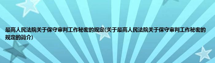 本文关于最高人民法院关于保守审判工作秘密的规定的简介就讲解完毕,希望对大家有所帮助。