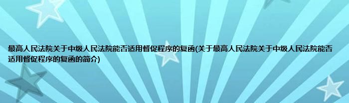 大家好,最高人民法院关于中级人民法院能否适用督促程序的复函,关于最高人民法院关于中级人民法院能否适用督促程序的复函的简介很多人还不知道,现在让我们一起来看看吧!