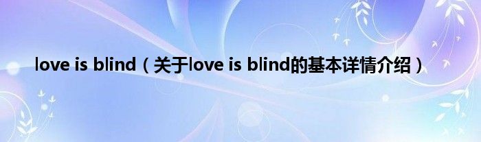 本文关于love is blind的基本详情介绍就讲解完毕,希望对大家有所帮助。