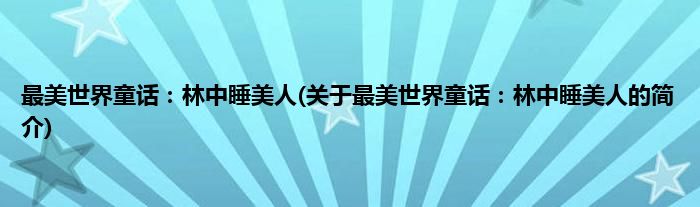 本文关于最美世界童话:林中睡美人的简介就讲解完毕,希望对大家有所帮助。