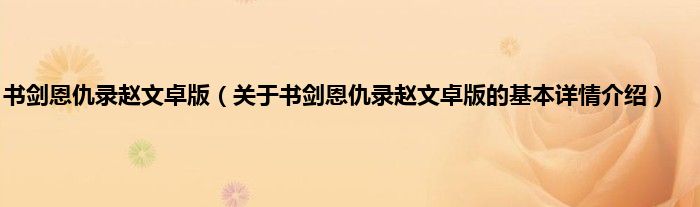 书剑恩仇录赵文卓版(关于书剑恩仇录赵文卓版的基本详情介绍)