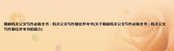 1、 《最新机关公文写作必备全书机关公文写作最佳参考书》是2011年海潮出版社出版的图书。