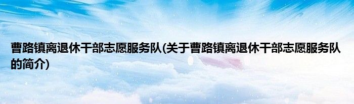 本文关于曹路镇离退休干部志愿服务队的简介就讲解完毕,希望对大家有所帮助。