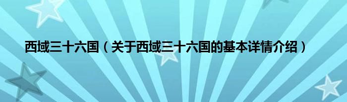 西域三十六国(关于西域三十六国的基本详情介绍)