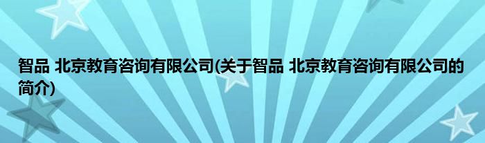 本文关于智品 北京教育咨询有限公司的简介就讲解完毕,希望对大家有所帮助。