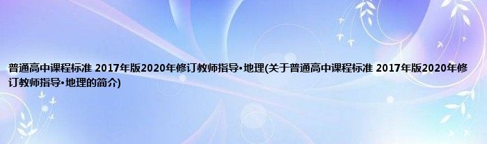 本文关于普通高中课程标准 2017年版2020年修订教师指导·地理的简介就讲解完毕,希望对大家有所帮助。