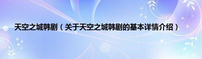 本文关于天空之城韩剧的基本详情介绍就讲解完毕,希望对大家有所帮助。