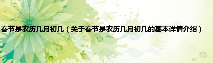 本文关于春节是农历几月初几的基本详情介绍就讲解完毕,希望对大家有所帮助。