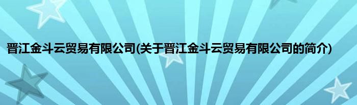 本文关于晋江金斗云贸易有限公司的简介就讲解完毕,希望对大家有所帮助。