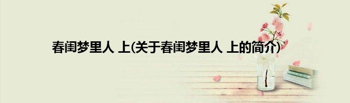本文关于春闺梦里人 上的简介就讲解完毕,希望对大家有所帮助。