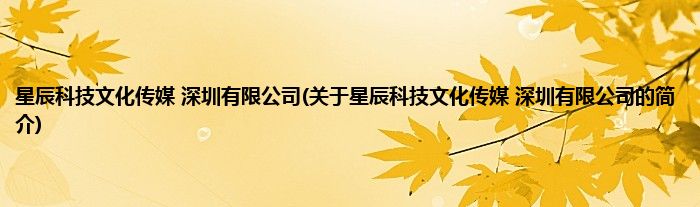 星辰科技文化传媒深圳有限公司(关于星辰科技文化传媒深圳有限公司的简介)