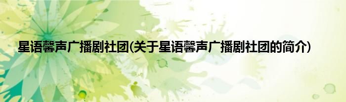 大家好,星语馨声广播剧社团,关于星语馨声广播剧社团的简介很多人还不知道,现在让我们一起来看看吧!