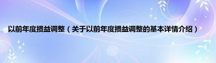 本文关于以前年度损益调整的基本详情介绍就讲解完毕,希望对大家有所帮助。