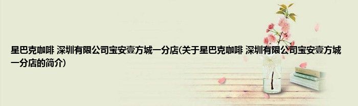星巴克咖啡深圳有限公司宝安壹方城一分店(关于星巴克咖啡深圳有限公司宝安壹方城一分...