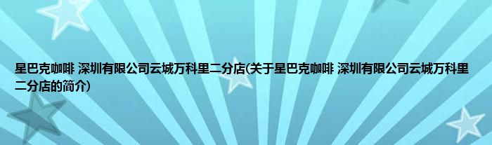 本文关于星巴克咖啡 深圳有限公司云城万科里二分店的简介就讲解完毕,希望对大家有所帮助。
