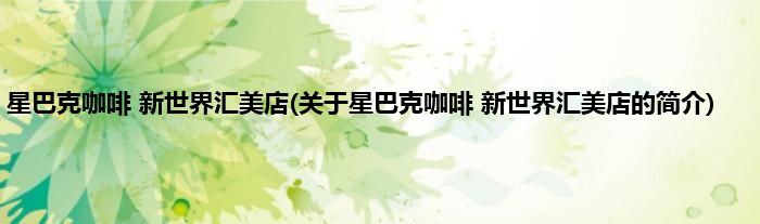 星巴克咖啡新世界汇美店(关于星巴克咖啡新世界汇美店的简介)