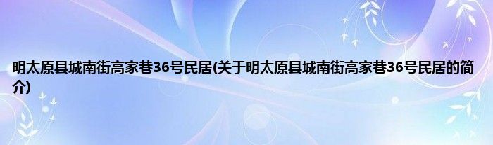 1、 明太原县城南街高家巷36号民居以文物建筑及民居旧门牌而命名的地名。