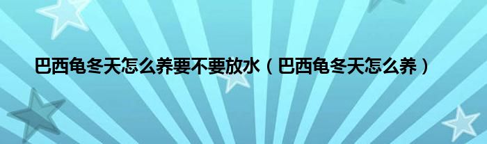 大家好,精选小编来为大家解答以上问题。巴西龟冬天怎么养要不要放水,巴西龟冬天怎么养很多人还不知道,现在让我们一起来看看吧!