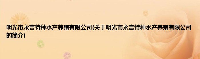 本文关于明光市永言特种水产养殖有限公司的简介就讲解完毕,希望对大家有所帮助。
