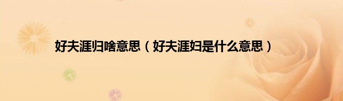 大家好,精选小编来为大家解答以上问题。好夫涯归啥意思,好夫涯妇是什么意思很多人还不知道,现在让我们一起来看看吧!