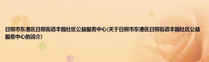 本文关于日照市东港区日照街道丰园社区公益服务中心的简介就讲解完毕,希望对大家有所帮助。