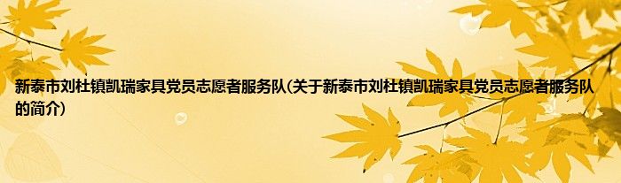 1、 新泰市刘杜镇凯瑞家具党员志愿者服务队是由新泰市党员志愿服务总队领导下的志愿团体。
