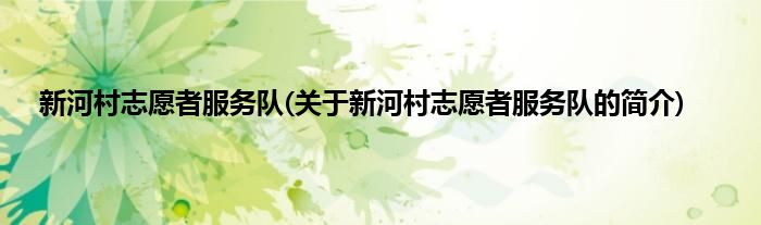 本文关于新河村志愿者服务队的简介就讲解完毕,希望对大家有所帮助。