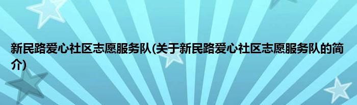 本文关于新民路爱心社区志愿服务队的简介就讲解完毕,希望对大家有所帮助。